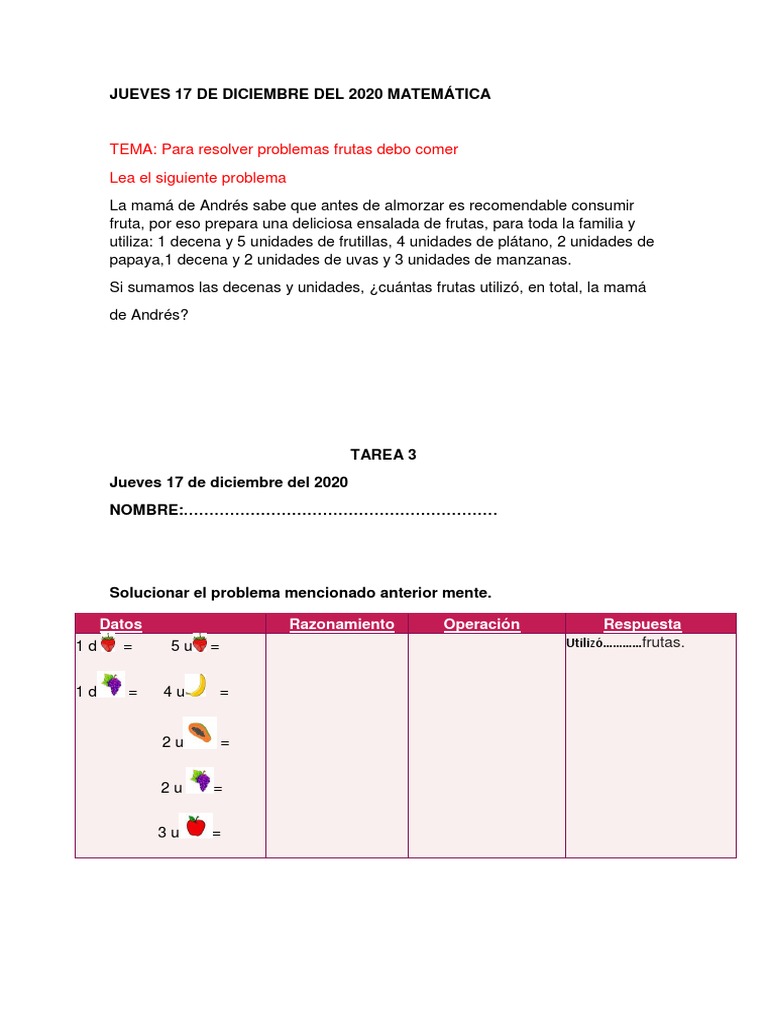 Problema De Matematica Frutas. Hay 59 frutas de las cuales 20 son plátanos ¿cuantas naranjas hay? Esta atividade traz alguns problemas de matemática que envolvem raciocínio lógico e atenção dos alunos, estas situações problemas são indicadas a alunos do quarto ano do ensino fundamental.
