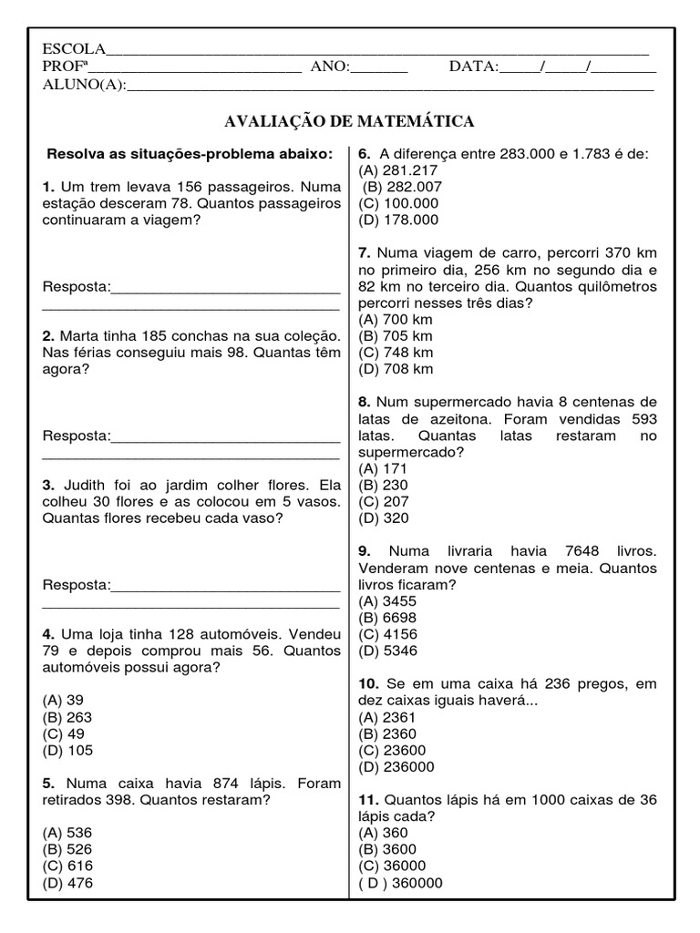 Problema De Matematica Quarto Ano. Savesave teste de matemática quarto ano for later. Aula ideal para ensino fundamental ( tereceiro, quarto e quinto ano) #divisão #continhasdedividir #matemática #alfabetizarte #ensinofundamental #terceiroano #quartoano #quintoano se thamara borges professora de matemática.