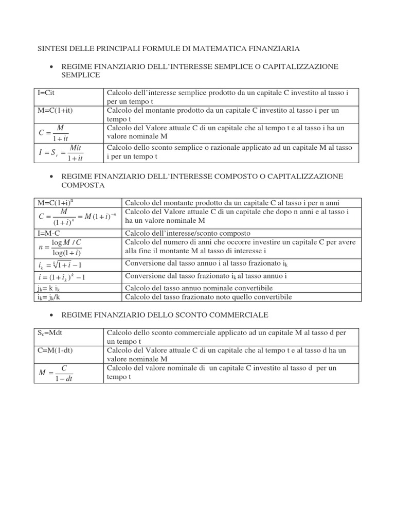 Formule Matematica Finanziaria Docsity