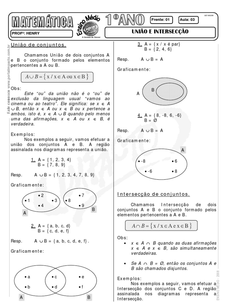 Matematica Pre Vestibular Impacto Conjuntos Uniao E Interseccao Pdf Conjunto Matematica Ensino De Matematica